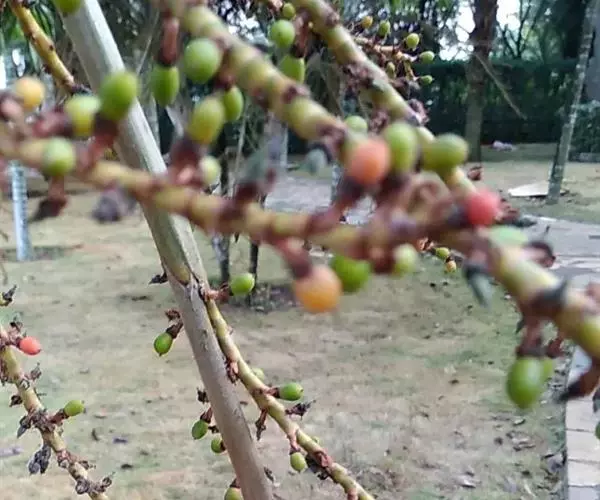 果实近球形,直径约1.5厘米,外果皮薄,中果皮肉质,内果皮薄。种子为不整齐的球形,直径约1厘米,灰白色,胚乳嚼烂状,胚基生。花期4月,果期9-10月。