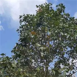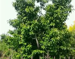 选择地势高燥、土壤深厚肥沃、有灌溉条件、土壤沙质不能过大、无盐碱性的地块作大苗育苗圃。圃地选好后施足基肥深翻,细耙整地。选1年生壮苗于翌春苗木发芽前带土球移栽。株行距1米×1米或1.5米×1.5米,尤其是后者,3年生苗木米径生长可达5厘米左右。采用1.5米×2米株行距定植,通过加强肥水管理。4-5年可培育出米径8-10厘米的大规格苗木。