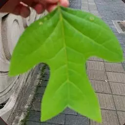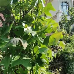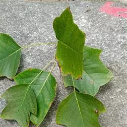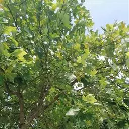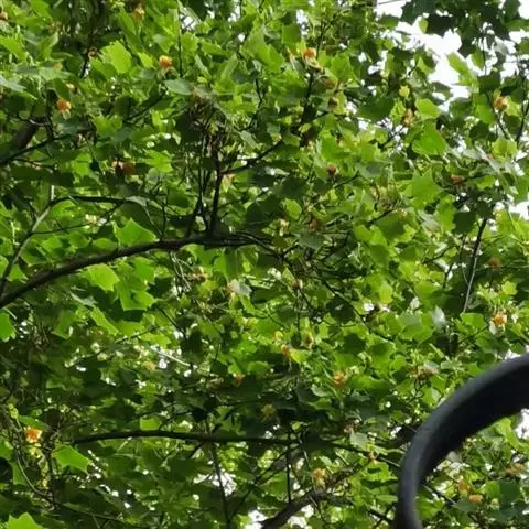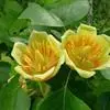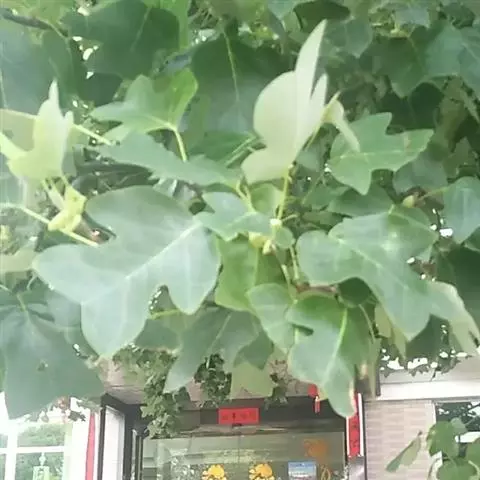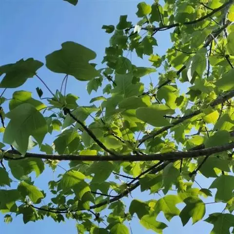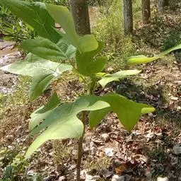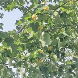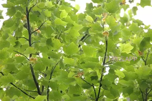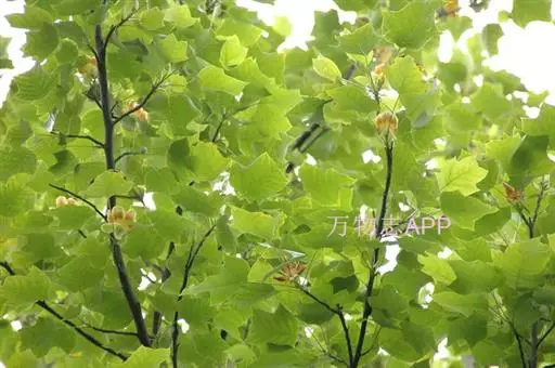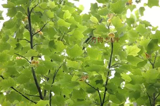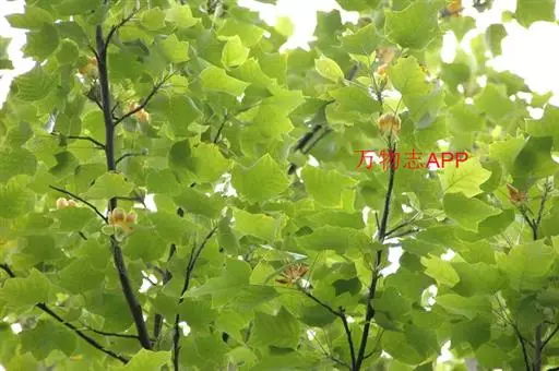 落叶乔木,高达60米,主干通直,叶形似马褂,长7-12厘米,先端略凹,具4裂片,两中裂片长小于宽,近似北美鹅掌楸,叶背面白粉点小,近似中国鹅掌楸。小枝紫褐色,树皮褐色,树皮浅纵裂。花期5-6月,花较大,黄色,具清香,单生枝顶,萼片3,花瓣6,形似郁金香。聚合果纺锤形,先端钝或尖,由多个顶端具1.5-3厘米长翅的小坚果组成,10月成熟,自花托脱落。 [1-2] 杂种鹅掌楸