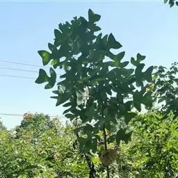 杂种鹅掌楸可孤植于草坪区,给人以幽静、祥和感;可群植于绿林,或做行道树。夏季枝繁叶茂,冠大浓郁、绿荫如盖,秋季叶变金黄,冬季落叶迟,是不可多得的彩叶树种。可广泛应用于庭院、公园、道路及厂区绿化。