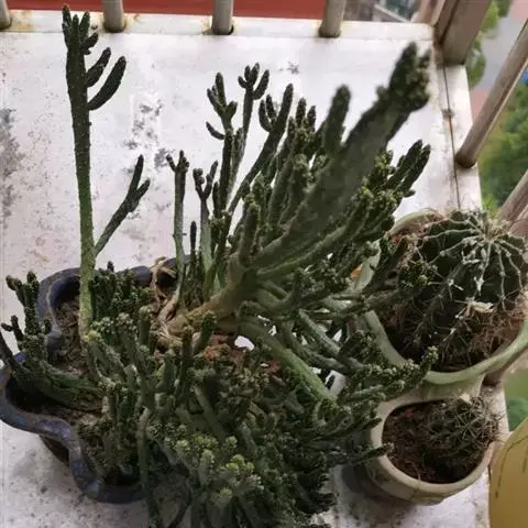 小乔木,高2~6米,直径10~25厘米,老时呈灰色或淡灰色,幼时绿色,上部平展或分枝;小枝肉质光棍…