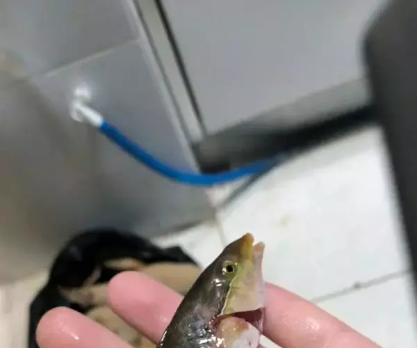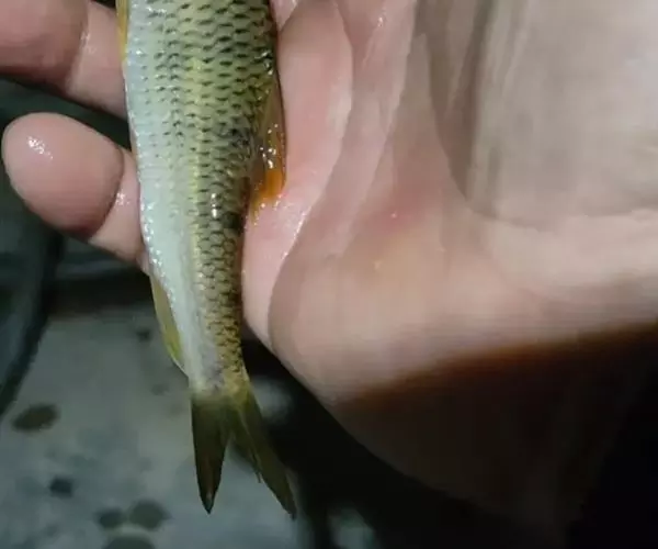 马口鱼上下颌相嵌 马口鱼(Opsariichthys bidens)俗名花杈鱼,桃花鱼,山鳡,坑爬,宽口,大口扒,扯口婆,红车公。产于南盘江、元江、沧江等水域。是一种杂食性偏肉食淡水鱼。