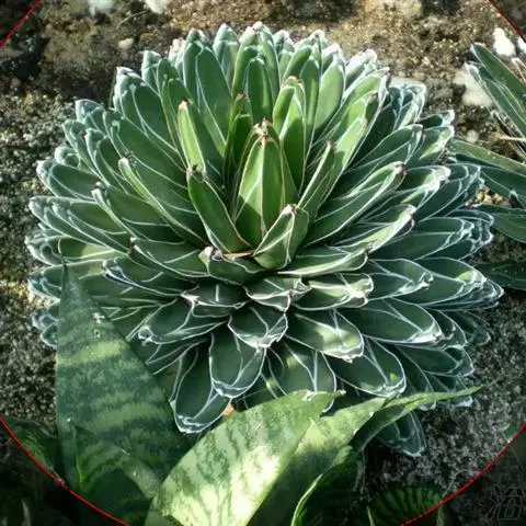皇后龙舌兰是天门冬科、龙舌兰属多年生草本多浆植物。无主茎,叶丛生,莲座状,株幅40厘米。叶较多,…