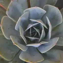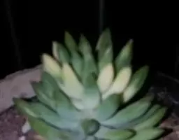蓝黛莲是一种景天科厚叶草属植物。叶片呈略扁的圆柱形,排列成莲座状;颜色为灰绿色,…