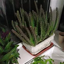 虎刺梅:别称铁海棠,是蔓生灌木植物。茎多分枝,长60-100厘米,直径5-10毫米,具纵棱,密生硬…