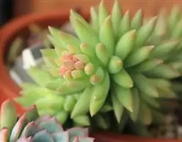 灯美人是景天科的园艺品种,多肉植物。叶片近柱状,丛生,在日照时间长、温差大的环境下会呈现橙粉色。