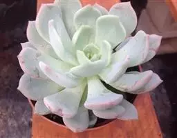 吉娃莲,景天科拟石莲花属,别名:吉娃娃,吉娃莲,植株小型,无茎的莲座叶盘非常紧凑。卵形叶较厚,带小尖,…