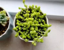 玉缀,别名翡翠景天景天科景天属常绿或半常绿多肉植物。植物匍匐下垂,翠绿色。叶小,多汁,纺锤形,、密…