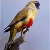 红腰朱雀:体长12-14厘米,小型鸟类。雄鸟前额和眉纹玫瑰粉红色,头顶和一宽的贯眼带深红褐色,背红…