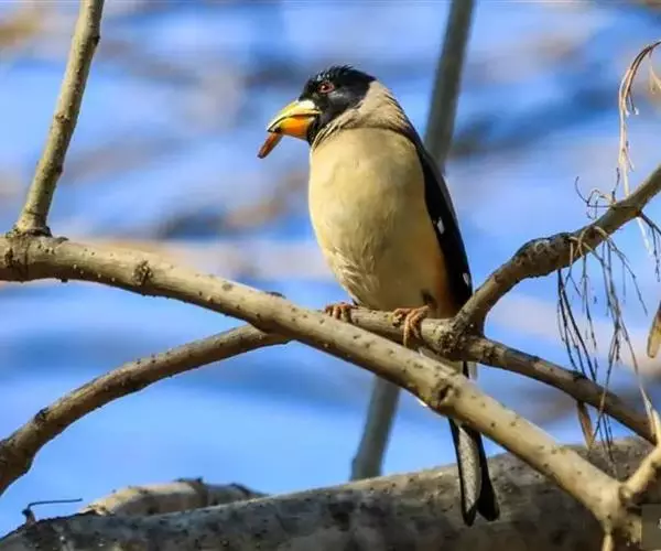 刚捕到的生鸟野性较大,开始入笼时往往见手就啄,但一段时间后就可驯化。该鸟和其它蜡嘴雀一样,非常聪明,可成群大笼饲养,经调教后也可以上架表演小杂技。饲料可选择稻谷、葵花子、麻子等,辅以昆虫和水果。另外必须放置水盆,供鸟每日水浴之用。