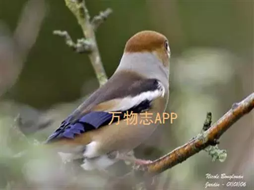 该雀英文名Cocothraustes migratorlus,又叫黑尾、包头蜡嘴、包头、皂儿、小桑嘴等别名。