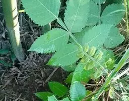 中乔木,树形优美。老茎有垂直的深裂痕,树皮灰白,新枝带点暗红色,分枝多。奇数羽状复叶,互生,具叶柄,叶柄具狭翼,小叶 3~7 片,几无柄,长椭圆形或卵状长椭圆形,叶基近圆形,叶尖钝,具 1 微尖,叶缘全缘或不明显疏锯齿状缘,上表面暗绿色。呈密集枝圆锥花序,生於枝顶或枝梢之叶腋,花小,花萼短,5 裂,裂片三角形,花瓣 5片,长椭圆形,雄蕊 10 枚,长短不等,著生花盤外侧基部,子房球形,1 室,花柱 3 裂,花期 4~5 月。核果,球形。