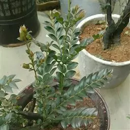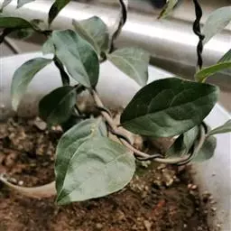 中型桩一般经5年的蓄枝养护,新培枝一般已有三节,可在清明前后进行改植换土,上观赏盆进行细致的造型管理。清明后全桩重剪,摘叶,把树桩起出,修剪根系,选配合适的盆,用经过筛选的沙3坭7的混合土重新种植。生长正常后,回复到以前的管理。黑檀生长速度缓慢,可用剪扎结合的方法加速作品成型。剪:清明前重剪最好。扎:烈日后的傍晚,当枝条软熟时,用金属丝圈绕枝条,按造型需要进行弯曲。要注意枝条的节律变化,刚柔互换,长短跨度交替使用,才能使造型枝曲线优美。随时摘除顶 芽,促发侧芽,直至树型丰满,作品成型。