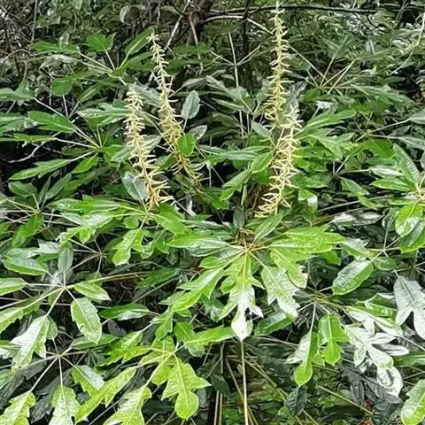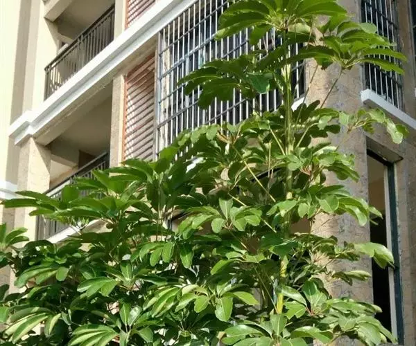 昆士兰伞木,吕松鹅掌柴 ,称昆石兰遮树,澳洲鸭脚木、方式叶鹅掌柴、伞树、大叶伞。叶片阔大,柔软下…