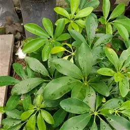 (1) 斑叶伞树(var.variegata):又称斑叶鸭脚木。叶深绿色,叶面有不规则的乳白色斑纹。