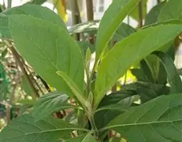 蚂蚱腿子 落叶小灌木,高60-80厘米。枝多而细直,呈帚状,具纵纹,被短柔毛。叶片纸质,生于短枝上的椭圆形或近长圆形,生于长枝上的阔披针形或卵状披针形,长2-6厘米,宽1-2厘米,顶端短尖至渐尖,基部圆或长楔尖,全缘,幼时两面被较密的长柔毛,老时脱毛;中脉两面均凸起,侧脉极纤弱,通常仅于基部的1对较明显,网脉密而显著,两面均凸起;叶柄长3-5毫米,被柔毛,短枝上的叶无明显的叶柄。