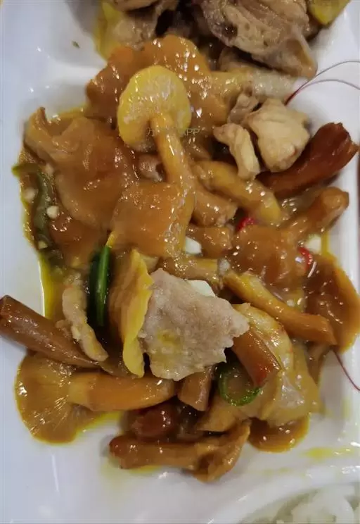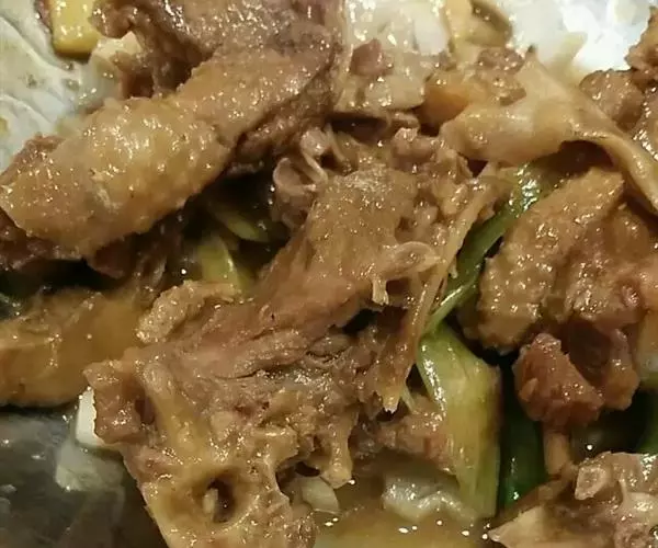 柠檬鸭 柠檬鸭肉酸酸辣辣,味浓而冲,第一口感觉强烈,第二口开始就不能停箸。鸭肉香脆有肉感,不软不腻不臊,带有特别的柠檬香气。柠檬鸭的酸香辣气并不仅仅是柠檬的功劳,实际上在爆炒的时候要放入酸辣椒、酸芥头、酸姜、蒜泥等。临出锅前加入咸柠檬和紫苏,咸柠檬要去籽,最后才放进去,不然煮久了会苦,也把那种清香挥发掉了。
