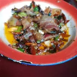 4、这种做法还可以用来做带皮的五花肉,肉一定要肥腻,因为柠檬很解腻,如果用牛肉或者鸡肉,会比较寡淡,不好吃;