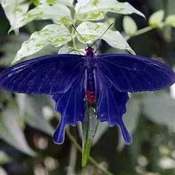 曙凤蝶是凤蝶科、曙凤蝶属蝴蝶。体背黑色,头、颈、胸侧及腹侧具红色鳞毛。雌、雄异型。雄蝶翅黑绒色,…