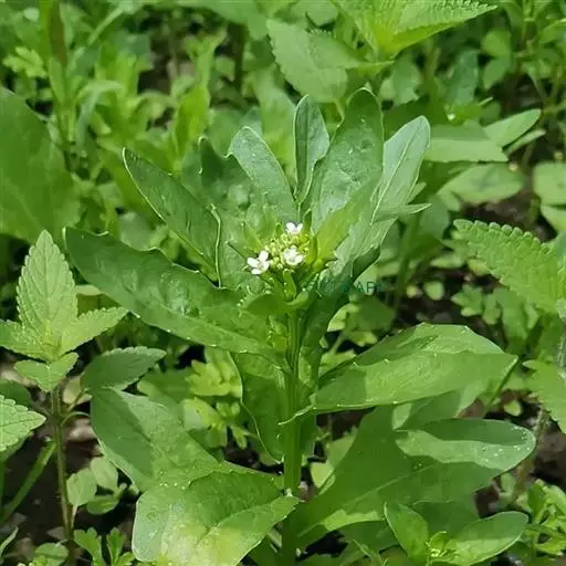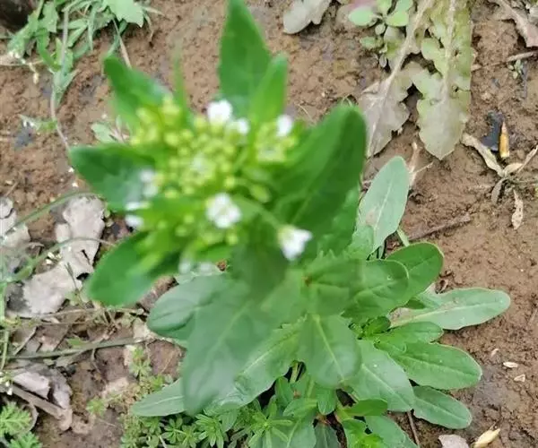 菥蓂(pennycress),一年生草本,高9-60厘米,无毛;茎直立,不分枝或分枝,具棱。基生叶倒卵状长圆形,长3-5厘米,宽1-1.5厘米,顶端圆钝或急尖,基部抱茎,两侧箭形,边缘具疏齿;叶柄长1-3厘米。总状花序顶生;花白色,直径约2毫米;花梗细,长5-10毫米;萼片直立,卵形,长约2毫米,顶端圆钝;花瓣长圆状倒卵形,长2-4毫米,顶端圆钝或微凹。