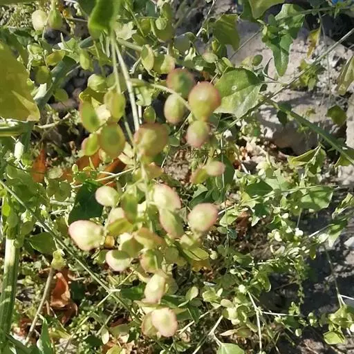 短角果倒卵形或近圆形,长13-16毫米,宽9-13毫米,扁平,顶端凹入,边缘有翅宽约3毫米。种子每室2-8个,倒卵形,长约1.5毫米,稍扁平,黄褐色,有同心环状条纹。花期3-4月,果期5-6月。