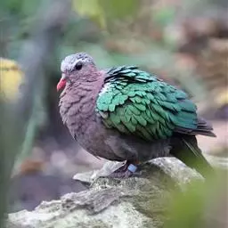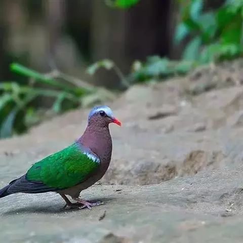 绿背金鸠体长约25厘米,是中等体型、尾甚短的地栖型斑鸠。下体粉红,头顶灰色,额白,腰灰,两翼具亮绿色。…