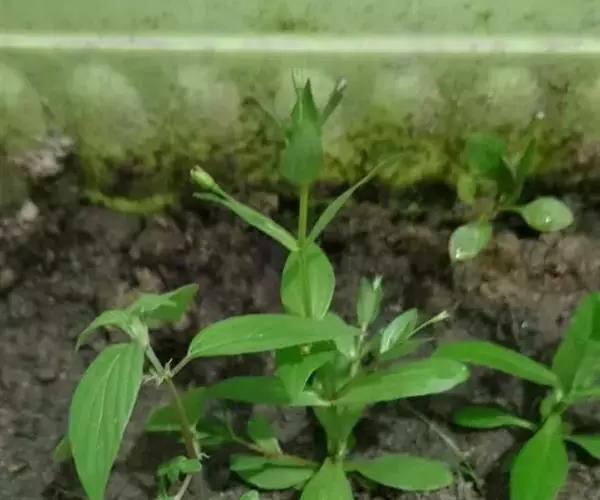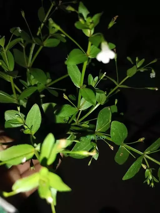 直立草本,根细密成丛;茎高5-20厘米,基部多分枝,无毛。叶无柄;叶片椭圆形至矩圆形多少带菱形,长1-2.5厘米,宽6-12毫米,顶端钝至圆头,全缘或有不明显的钝齿,两面无毛,叶脉并行,自叶基发出3-5条。花单生于叶腋,花梗纤细,长1.2-2厘米,比叶长,无毛;萼仅基部联合,齿5,条状披针形,长约4毫米,顶端钝头,外面微被短毛;花冠粉红色或紫色,长5-7毫米,管长约3.5毫米,向上渐扩大,上唇短,长约1毫米,2浅裂,下唇甚大于上唇,长约3毫米,3裂,侧裂椭圆形较小,中裂圆形,向前突出;雄蕊4,全育,前方2枚雄蕊的附属物腺体状而短小;花药基部微凹;柱头2裂。蒴果球形或卵球形,与萼近等长或略过之,室间2裂;种子多数,有格纹。花期7-10月,果期9-11月。
