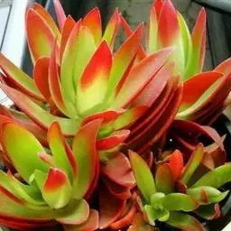 三色花月锦是景天科青锁龙属多肉植物,燕子掌的栽培品种,叶片有红、黄、白斑块,色彩斑斓。花期秋季。