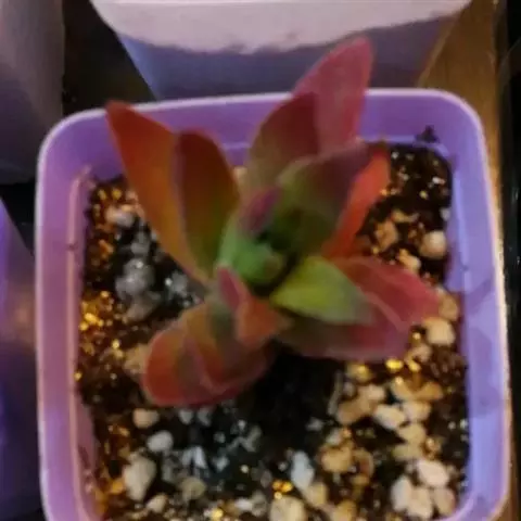 红稚儿Crassula pubescens subsp. radicans Toelken为景天科、青锁龙属多肉植物。植株丛生,有细小的分枝,茎肉质,时间养久了茎会逐渐半木质化,红稚儿叶片有点薄,叶片颜色绿。颜色反差巨大,平时为绿色,日照充足的春秋季节,变为火红色。野外分布于南非东开普省布什维德谷。喜温暖干燥和阳光充足的环境,怕低温和霜雪,耐半阴。叶形叶色较美,有一定的观赏价值;盆栽可放置于电视、电脑旁,可吸收辐射,亦可栽植于室内以吸收甲醛等物质,净化空气。