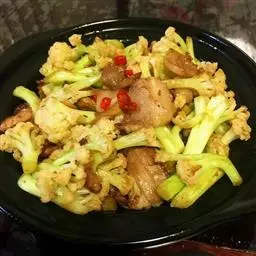 包菜250克、五花肉100克、干辣椒4个、蒜片3克、香醋1茶匙、酱油2茶匙、盐和生粉各1茶匙、油2茶匙、料酒1茶匙