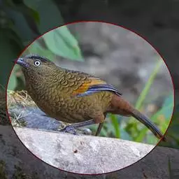 蓝翅噪鹛:噪鹛科、彩翼噪鹛属动物。中型鸟类,体长22-25厘米。上体棕橄榄褐色密被黑色鳞状斑,…