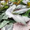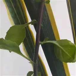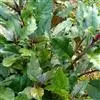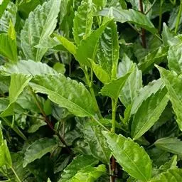 叶大,无柄或有短柄;叶片倒卵形,长圆状椭圆形,椭圆形或长圆状披针形,长10-30厘米,宽4-11厘米,顶端渐尖,基部楔状狭成短柄或无柄而扩大抱茎的宽叶耳,边缘有不规则的锐锯齿,齿端具小尖,侧脉12-30对,弧状弯曲,上面绿色,下面有时变紫色,两面无毛;上部叶渐小,长圆状披针形或披针形,顶端长渐尖或尾尖。