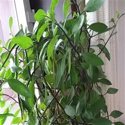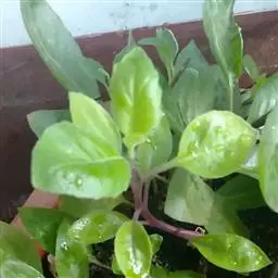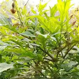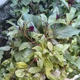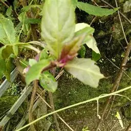 木耳菜 多年生高大草本,高1.5-2米。茎肉质,基部木质,直径1.5-2厘米,下半部平卧,上部直立,有多数伞房状分枝,绿色或带紫色,有明显的槽沟,无毛或上部多少被毛。