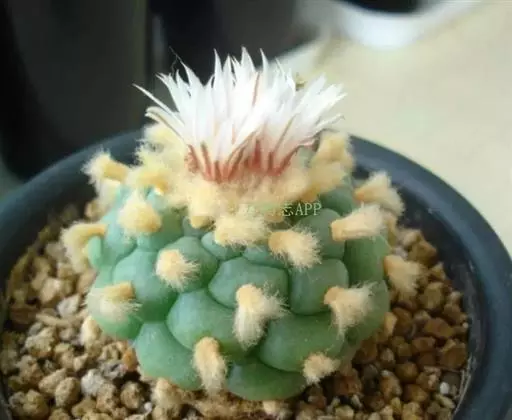 江守玉为仙人掌科强刺球属,植株扁圆形至球形,后成圆柱状,体色灰绿,刺座上附生白色绒毛,花橙黄色,漏…
