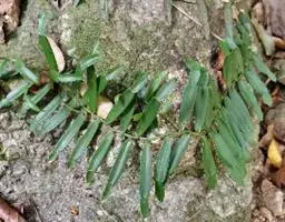 多年生附生常绿草本植物。叶革质丛生,长圆披针形,先端尖,基部圆形。根肉质,节间短;叶常绿,革质,长椭圆状心脏形。