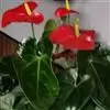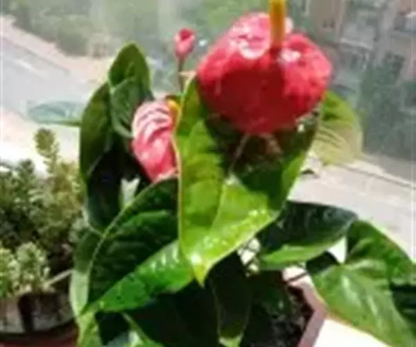 火鹤花 花朵由鲜猩红色的佛焰苞和橙红色的肉穗花序组成,花序螺旋状卷曲,光彩夺目,风姿楚楚,给人以明快,热烈的感受。盆栽宜选用腐叶土(或泥炭土)、苔藓加少量园土和木炭以及过磷酸钙的混合基质。生长期间约每月施1-2次氮,磷结合的薄肥或进行根外追肥。从10月至翌年3月要适当控制浇水,其他时间浇水要充足,否则影响开花,但需注意浇水要干湿相间,切忌盆内积水,否则易引起烂根。火鹤花怕寒冷,越冬期间室温以保持在16℃以上为宜。冬季寒冷和潮湿均会引根系腐烂。火鹤花喜半阴,怕强光,故大敌春夏秋三季注意适当遮阴,夏季需遮去60%的阳光。炎热季节最好将花盆放在盛有湿沙土的沙盘上养护。冬季放室内南窗附近培养。不需遮光。为保持较高的湿度,每天要向叶面上喷水2-3次,同时向地面上洒水。一般每隔1-2年于早春3-4月换一次盆。繁殖火鹤花,以分株为主,多结合早春换盆进行。