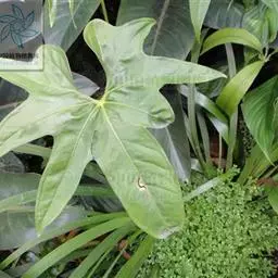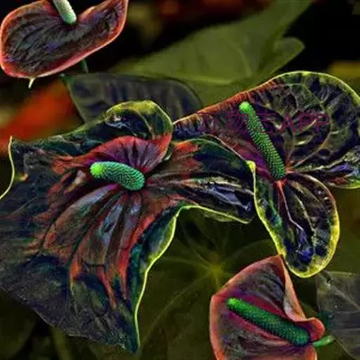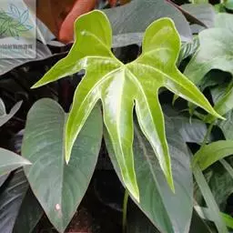 叶子和枝茎外形奇特:其叶颜色深绿,心形,厚实坚韧,花蕊长而尖,有鲜红色、白色或者绿色,周围是红色、粉色或魄的佛焰苞,全都有毒。
