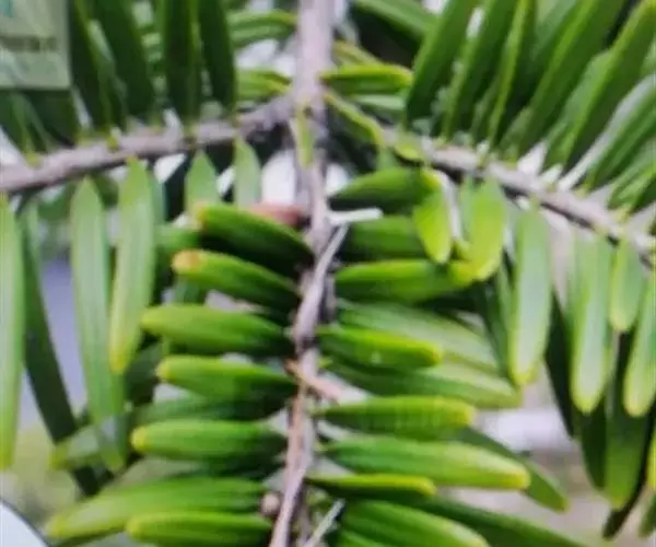 乔木,在原产地高达50米,胸径达2米;树皮暗灰色或暗灰黑色,粗糙,成鳞片状开裂;大枝通常平展,树冠塔形;一年生枝淡灰黄色,凹槽中有细毛或无毛,二、三年生枝淡灰色或淡黄灰色;冬芽卵圆形,有少量树脂。叶条形,直或微弯,长2-3.5厘米,稀达5厘米,宽3-4毫米,近于辐射伸展,或枝条上面的叶向上直伸或斜展,枝条两侧及下面之叶列成两列,先端钝而微凹(幼树之叶在枝上列成两列,先端二裂),上面光绿色,下面有2条灰白色气孔带;横切面上面皮下层细胞二层,外层不连续排列,内层仅有数枚皮下层细胞,两端边缘有一层连续排列的皮下层细胞,下面中部一层,或有数枚疏生的皮下层细胞形成第二层,壮龄树及果枝之叶的树脂道4个(2个中生,2个边生)或仅有2个中生树脂道,幼树之叶有2个边生的树脂道,稍大的树上之叶有2个中生的树脂道。