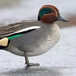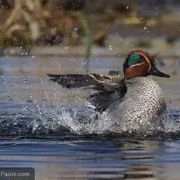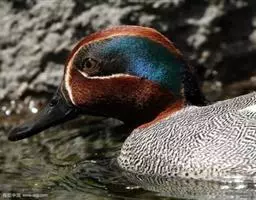 绿翅鸭是小型鸭类,体长37厘米,体重约0.5千克。嘴脚均为黑色。雄鸟头至颈部深栗色,…