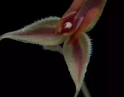 芳香石豆兰(学名:Bulbophyllum ambrosia (Hance) Schltr.):根状茎粗2-3毫米,被覆瓦状鳞片状鞘,每相距3-9厘米生1个假鳞茎。假鳞茎直立或稍弧曲上举,圆柱形顶生1枚叶。叶革质,长圆形。花葶出自假鳞茎基部,1-3个,圆柱形,直立,顶生1朵花;花多少点垂,淡黄色带紫色;花瓣三角形,长约6毫米,中部宽3毫米,先端急尖,具3条脉,边缘全缘;唇瓣近卵形,中部以下对折,基部具凹槽。花期通常2-5月。