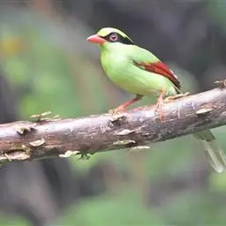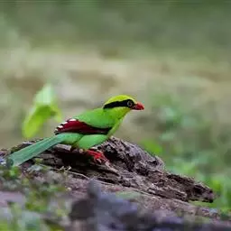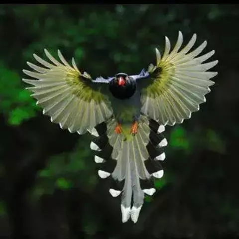 蓝绿鹊:中型鸟类,共有5个亚种。体长36-38厘米。尾长,嘴、脚红色。通体羽色主要为草绿色,…