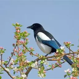 喜鹊:是鸦科、鹊属的一种鸟类。共有11个亚种。体长40-50厘米,雌雄羽色相似,…