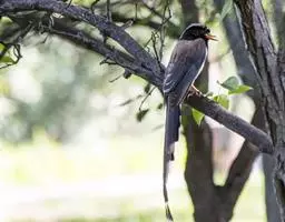 灰树鹊中型鸟类,体长多为31~39厘米。头顶至后枕灰色,其余头部以及颏与喉黑色。背、肩棕褐或灰褐色,…