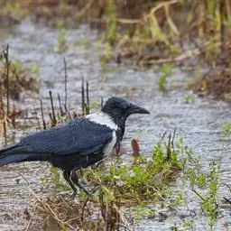 白颈鸦:除颈背和胸有一白圈外,其余体羽全黑。 成鸟的后头、翕的上部延伸至上胸白色,这些白羽基部灰色,…