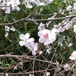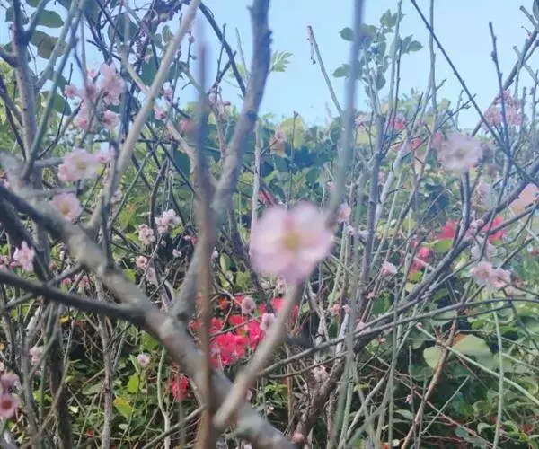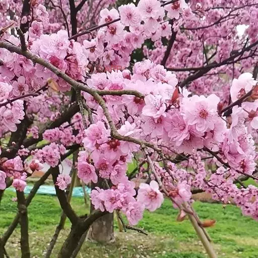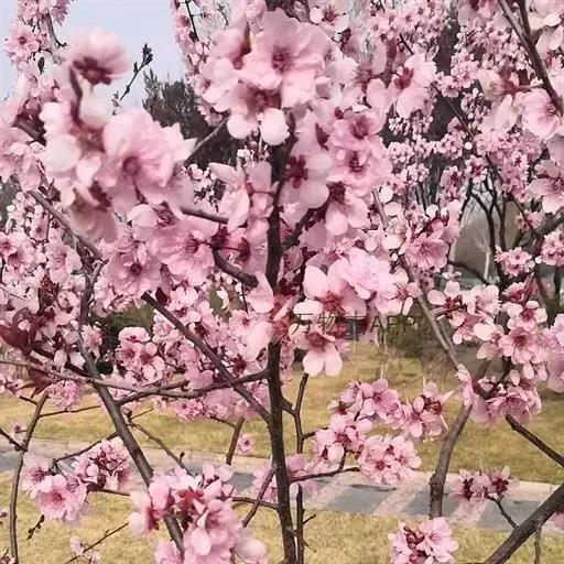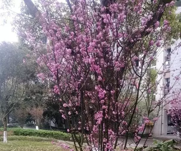 花多,花艳,花期早 经过正常修剪的美人梅,最多一株可开花450朵,花开浅紫花色浓而不艳,冷而不淡。花期正值少花的早春。若行盆栽,还可人工控制花期到“五一”节开放。