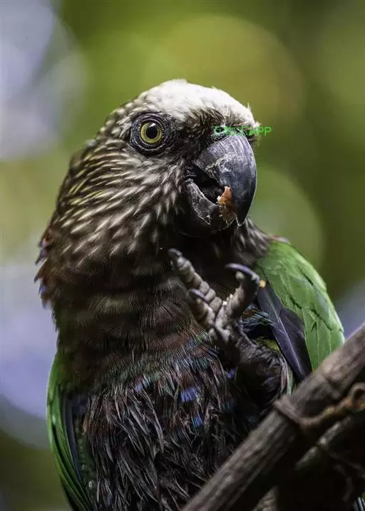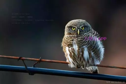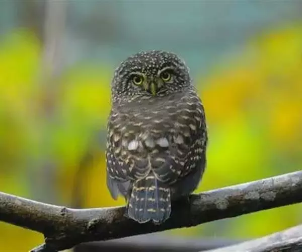 斑头鸺鹠的虹膜黄色,嘴黄绿色,基部较暗,蜡膜暗褐色,趾黄绿色,具刚毛状羽,爪近黑色。