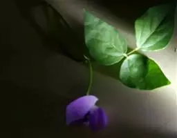 一年生缠绕、草质藤本或近直立草本,有时顶端缠绕状。茎近无毛。羽状复叶具3小叶;托叶披针形,长约1厘米,着生处下延成一短距,有线纹;小叶卵状菱形,长5-15厘米,宽4-6厘米,先端急尖,边全缘或近全缘,有时淡紫色,无毛。