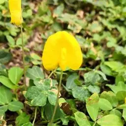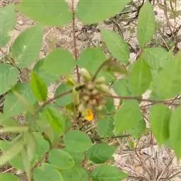 总状花序腋生,具长梗;花2-6朵聚生于花序的顶端,花梗间常有肉质密腺;花萼浅绿色,钟状,长6-10毫米,裂齿披针形;花冠黄白色而略带青紫,长约2厘米,各瓣均具瓣柄,旗瓣扁圆形,宽约2厘米,顶端微凹,基部稍有耳,翼瓣略呈三角形,龙骨瓣稍弯;子房线形,被毛。