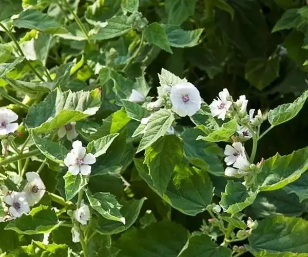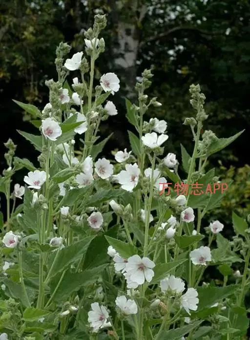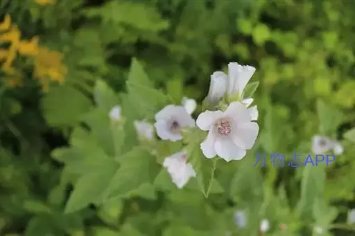药蜀葵(学名:Althaea officinalis Linn.)是锦葵科、蜀葵属多年生直立草本植物,高可达1米,叶片卵圆形或心形,先端短尖,边缘具圆锯齿,两面密被星状绒毛;叶柄被星状绒毛;总苞的小苞片披针形,密被星状糙毛;萼杯状,裂片披针形,较苞片为长,花冠淡红色,花瓣倒卵状长圆形;果圆肾形,外包以宿存萼,分果爿多数。7月开花。