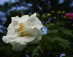 芙蓉葵是锦葵科,木槿属,拉丁学名,又名草芙蓉、大花秋葵,原产于北美。落叶灌木状。叶大、广卵形,…